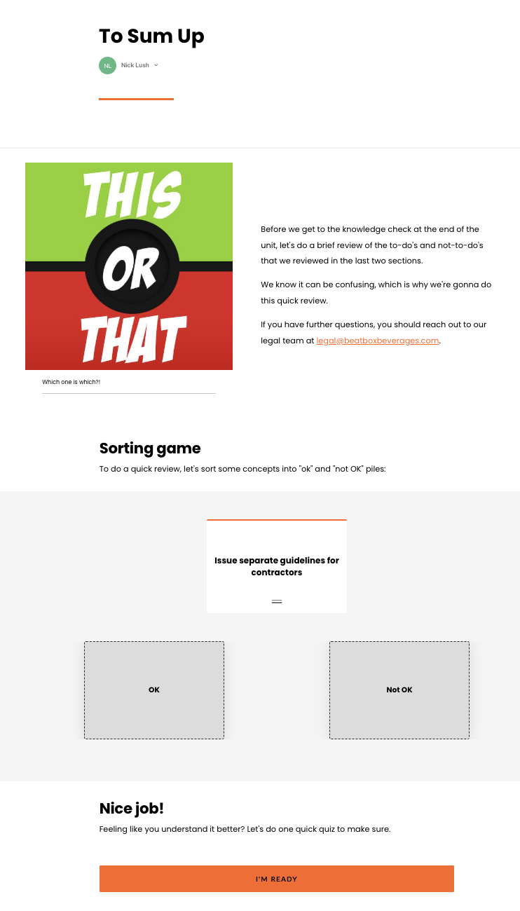 The primary challenge being to successfully solve for two different use cases: sequential, “certification”-style learning and just-in-time trainings usable in the flow of work.